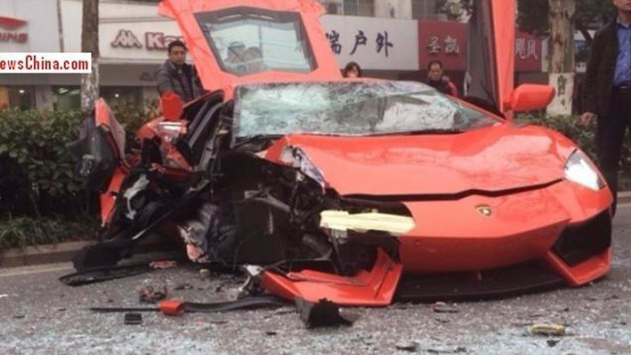 Lamborghini Aventador Has A Brutal Frontal Collision With A Bus In China